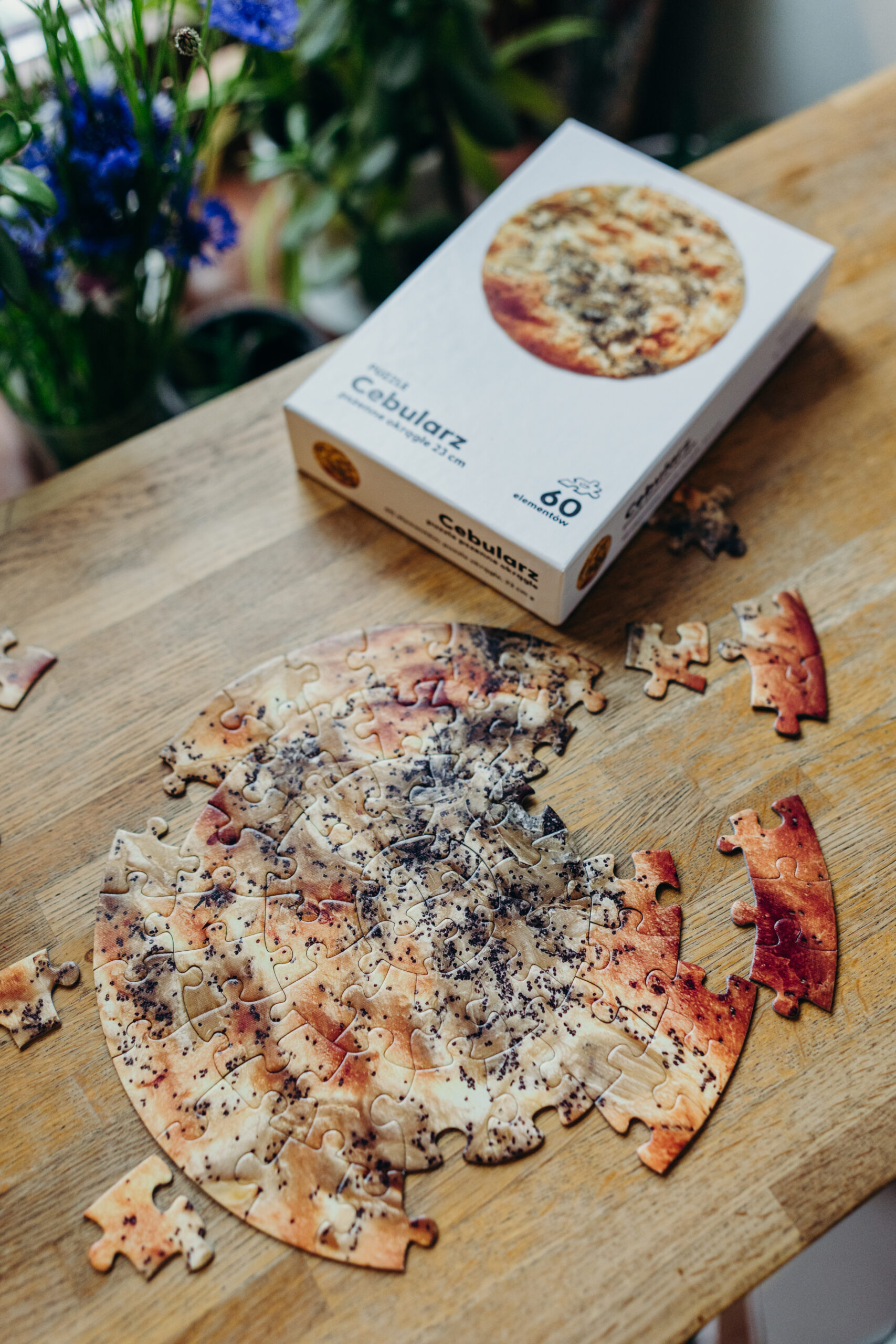 Inspirując się popularnym w regionie Lubelszczyzny cebularzem, stworzyliśmy unikalne puzzle kulinarne, które nie tylko smakują wyśmienicie, ale także dostarczają przyjemności z układania. Nasz Puzzle Cebularz składa się z 60 części, które razem tworzą tradycyjny cebularz – placek z ciasta drożdżowego, pokryty aromatyczną cebulą i posypany makiem. Każda część jest starannie przygotowana, aby po złożeniu tworzyły harmonijną całość. To nie tylko smaczna przekąska, ale także okazja do wspólnego spędzania czasu i zabawy z bliskimi.